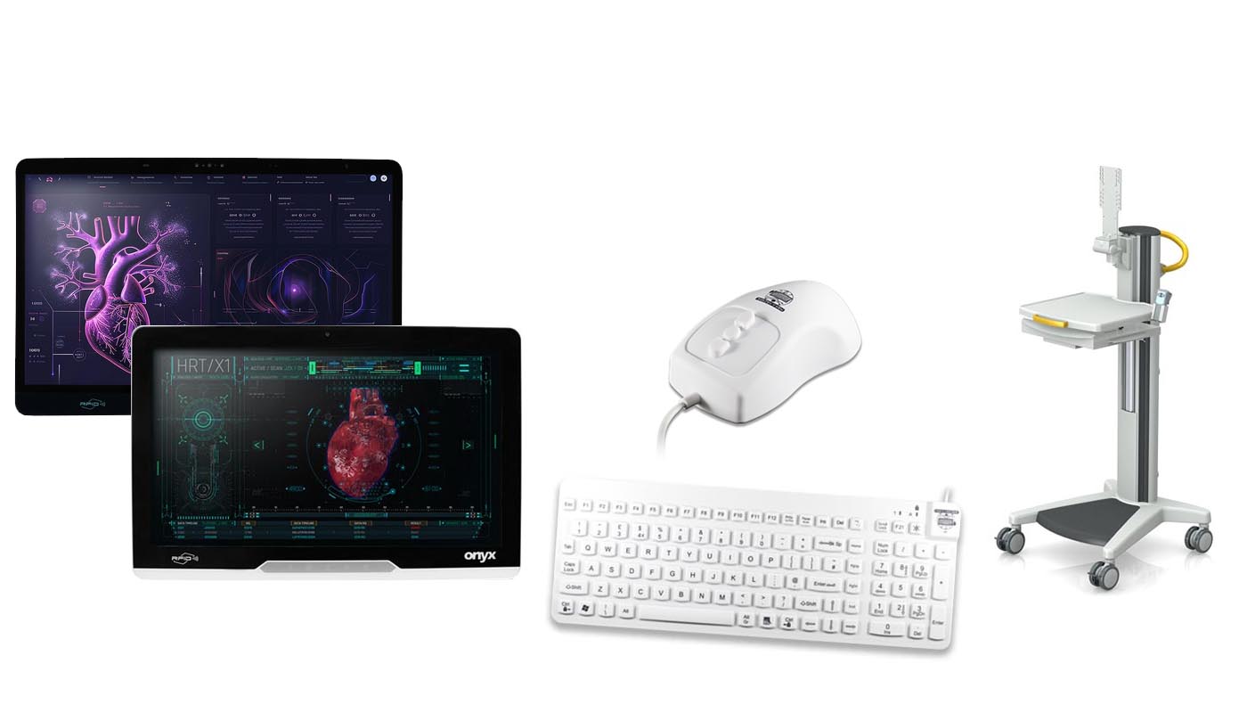 Vi erbjuder både medicinskt godkända bildskärmar och datorer samt vagnar anpassade för daglig rengöring. Vi har även ett stort utbud tangentbord och möss som enkelt kan tvättas och desinficeras.
